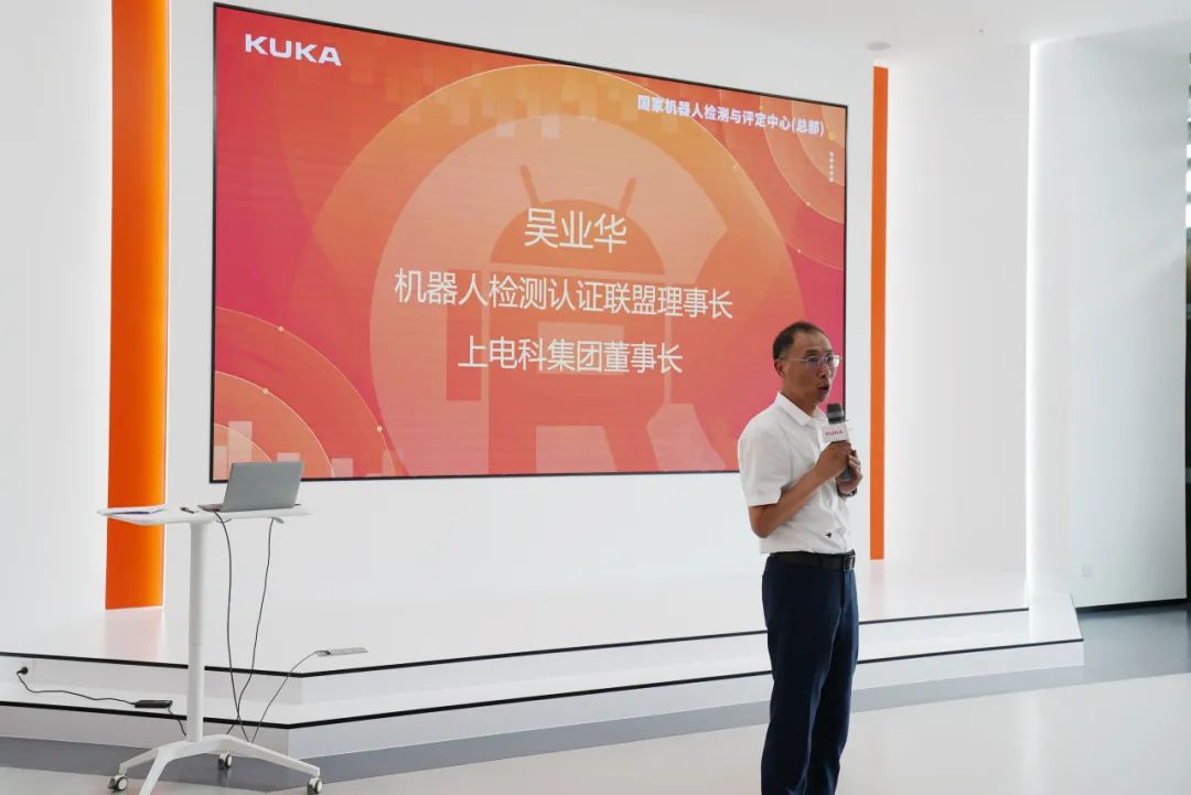 中国机器人检测认证联盟理事长、上海电器科学研究所(集团)有限公司董事长吴业华,库卡中国总经理许桂友,库卡中国企业业务总经理兼瑞仕格医疗总经理陈峰,质量总监沈毅,研发总监张冶,国家机器人检测与评定中心(总部)主任、今年会jinnianhui(中国)机器人有限公司官网院长郑军奇,常务副院长柴熠,机器人检测服务产品线经理朱晓鹏等出席了本次颁证仪式。