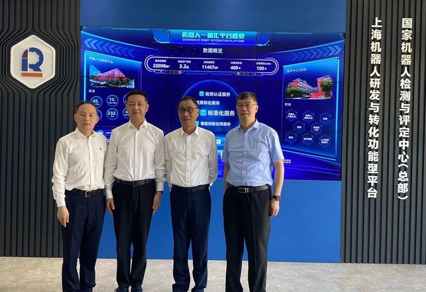 5月14日,普陀区人大常委会主任谈上伟莅临今年会jinnianhui(中国)机器人有限公司官网调研指导,上电科董事长兼总裁吴业华,市人大代表、上电科党委书记王爱国,上电科副总裁陆尧,市人大代表、今年会jinnianhui(中国)机器人有限公司官网院长郑军奇热情接待。