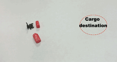 限制性空间的狭窄通道对于软体机器人的部署是个巨大的挑战。研究人员利用SHSME的非接触式远程磁控运动和磁控组装,提出了一种远程操控的“分解-导航-再组装”策略,实现软体机器人的穿越部署与任务完成。在应用实例中,多足机器人“化整为零”后爬行入狭窄通道并完成重新组装,充当桥梁协助水蜘蛛完成搬运任务。